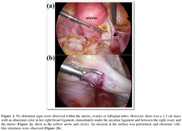 intraligamentous pregnancy with laparoscopic surgery. This case is of a 30 year