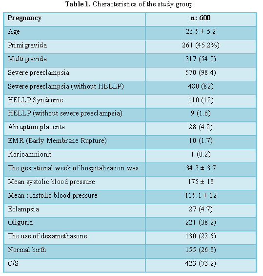 severe preeclampsia is 1.35%. The mean age of 600 patients was 26.5 ± 5.2. 45%