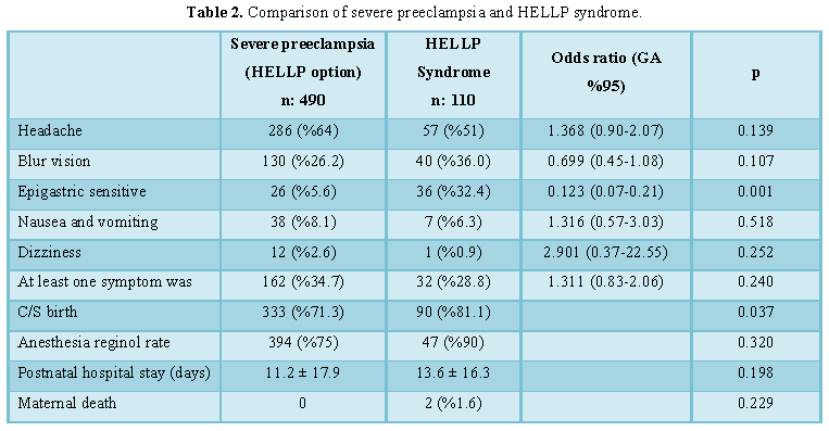 symptom (p>0.05) (Table 1). Epigastric sensitivity in patients with HELLP
