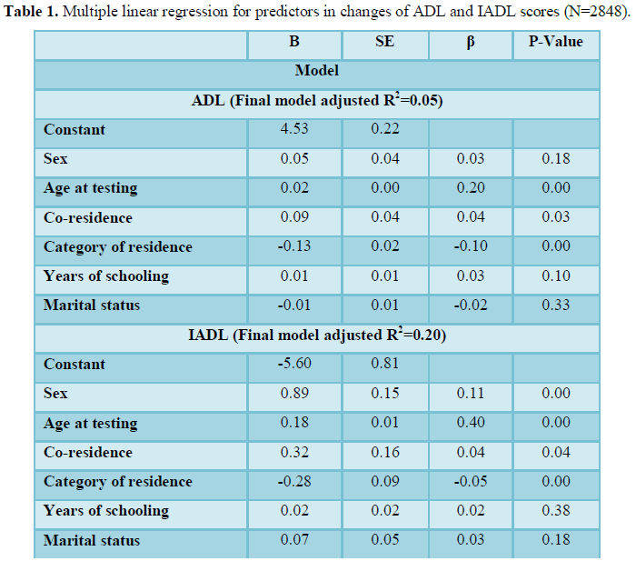 basic ADLs and IADLs was assessed in multiple linear regressions. Also,