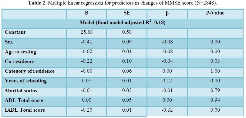 F (6, 2841)=115.18, P=0.000). The regression results for MMSE score are shown