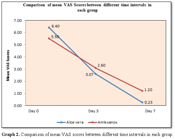 in VAS scores between baseline and day 3, baseline and day 7 and day 3 and day