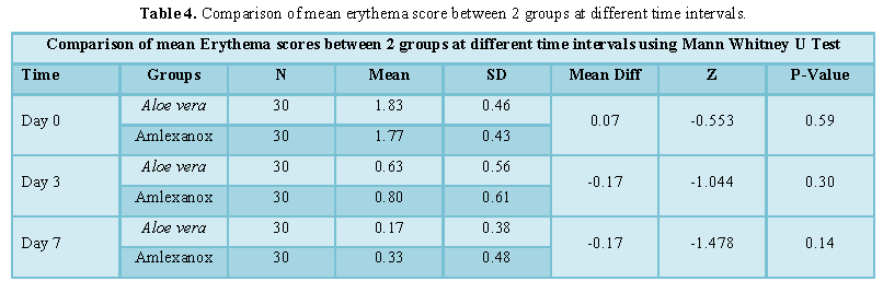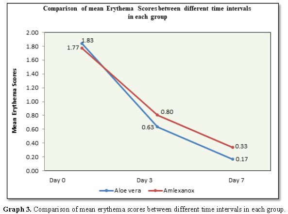 score) and erythema were evaluated on day 3 and day 7 and recurrence rate of