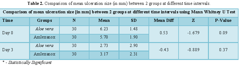 effective in reducing ulcer size, pain and erythema but Aloe vera gel group when compared with Amlexanox group has