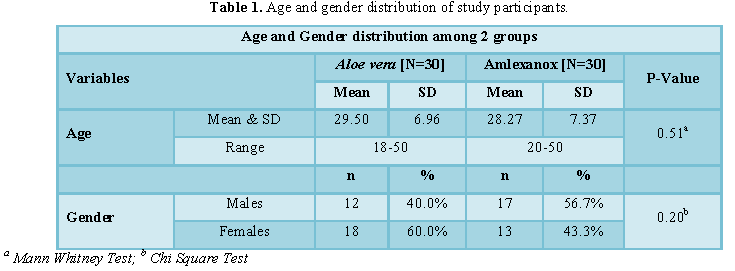 were distributed as Group A (Aloe vera