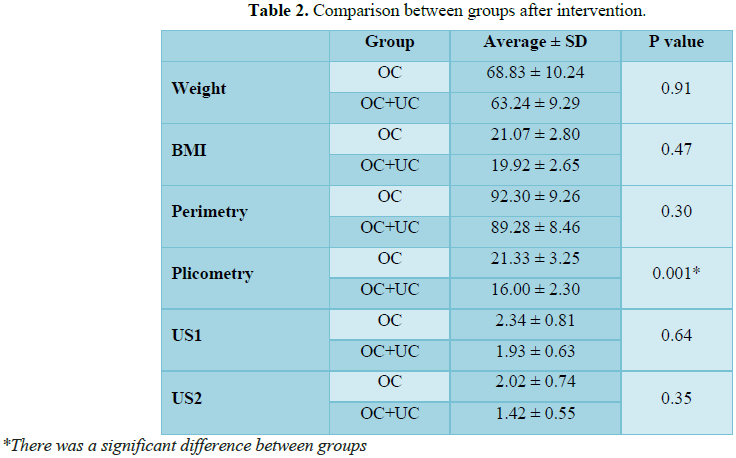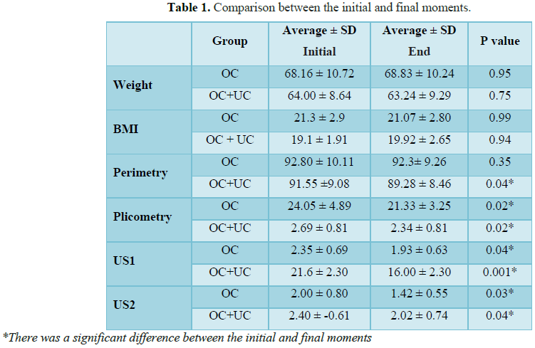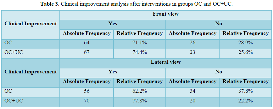 noticed in group OC and in group OC+UC (p=0.03, p=0.02, respectively), making