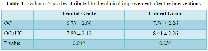 values were higher after treatment compared to the ones obtained with the OC+UC