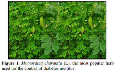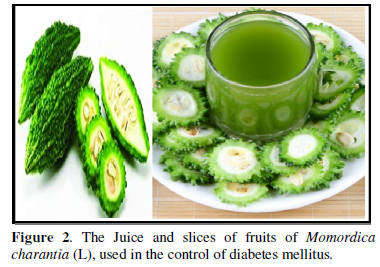The most popular plant used for treating diabetes mellitus is the bitter melon, Momordica charantia (L). It is also known as karela, balsam pear, or bitter gourd. It is a popular plant used for the treating of diabetes-related conditions amongst the populations of India, Asia, and South America, Caribbean indigenous populations of Asia, South America, India, the Caribbean and East Africa [26,27]. The fruits of Momordica charantia (L) deserve distinguishing bitter taste. The fruit taste of Momordica charantia (L) is more pronounced as it ripens. This may be reason for its name: bitter melon or bitter gourd. The experiments on the biochemical assays and animal models have produced abundant data and hypotheses accounting for the anti-diabetic influence of Momordica charantia (L). The bitter melon, Momordica charantia (L) has significant antidiabetic as well as hypolipidemic activity. Therefore, it can be used as an adjuvant along with allopathic treatment of medicine to treat diabetes (Figures 1 & 2).