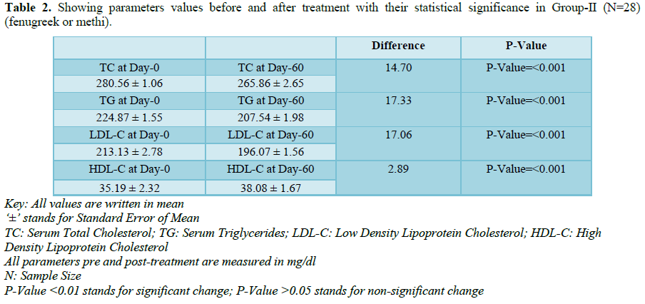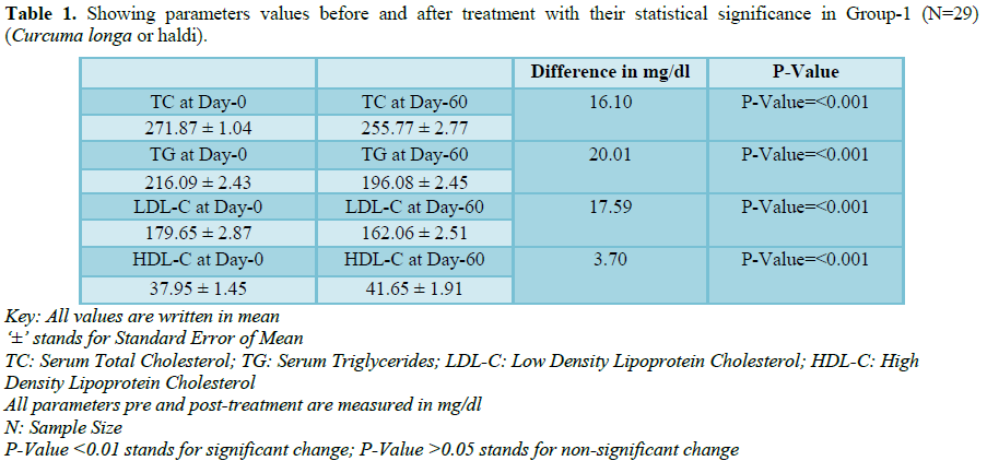 statistically analyzed by applying paired ‘T’ test, it revealed that Curcuma longa decreased total