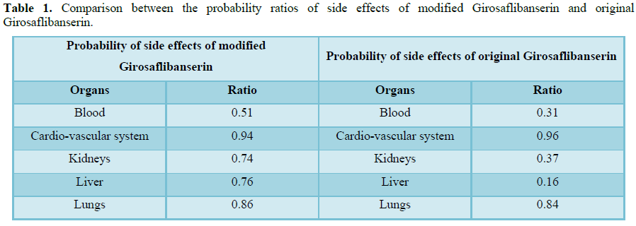 side effects and docking results of both modified Girosaflibanserin,
