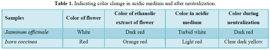 using standard phenolphthalein indicator. The each of flower extract indicator