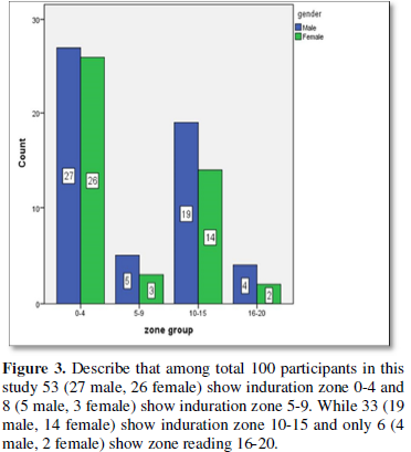 10mm to 15mm and 6 of them show zone ≥ 15 mm. Among 61 tuberculin test,