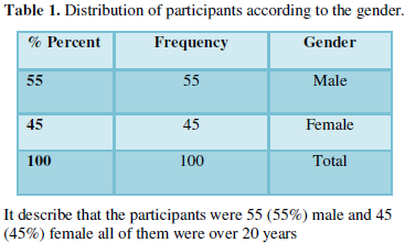 The participants were involving 55 (55%) males and 45 (45%) female. In