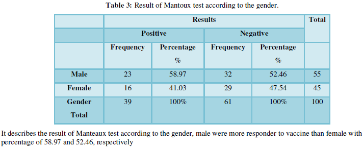 (39%) were positive for Manteaux test (≥ 10 mm diameter), while 61 (61%) were