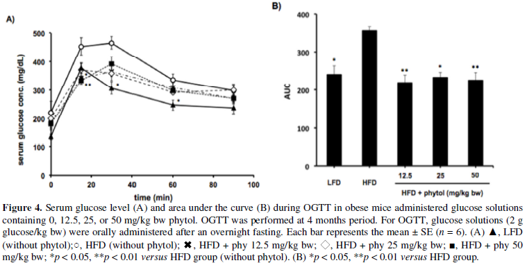 phytol on increases in postprandial blood glucose and insulin levels in obese