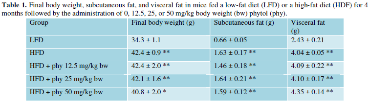 H, Gomi RT, Hirai S, Egashira Y (2013) Effect of dietary phytol on the