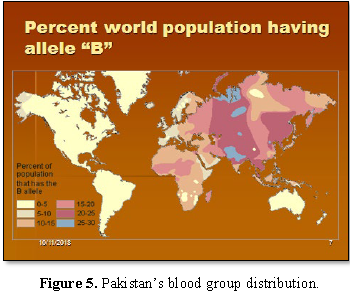 proportions as “B” 36%, “O” 33%, “A” 21% and “AB” 9%. In Pakistan the most