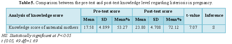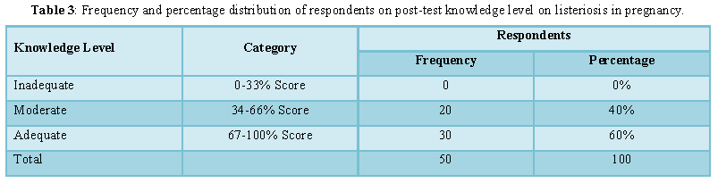 knowledge regarding listeriosis in pregnancy in relation with post-test