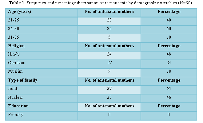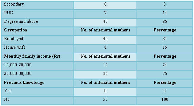 research study are 50 antenatal mothers in Sagar Hospital, Bangalore. In this