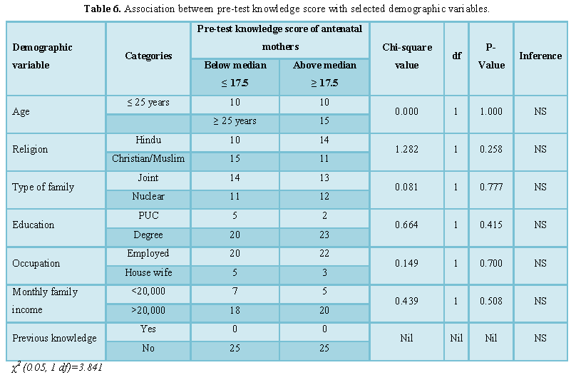 pre-test knowledge with selected demographic variables. It is evident from the