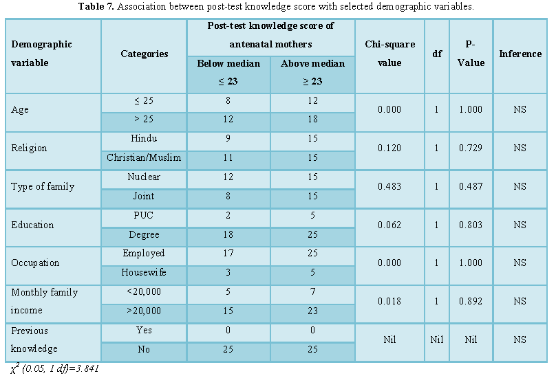 knowledge scores of antenatal mothers at P>0.05 level. The study concluded that the structured teaching