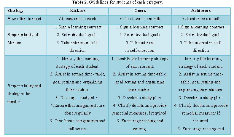 2. To identify the gaps, strengths, weakness in academics of the mentee