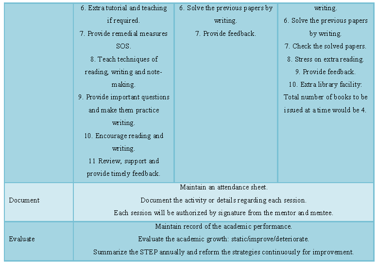 The institute wanted to create learning and motivating environment amongst all students. It wanted to reduce the gaps and challenge every student and the facilitator to perform to the best of their abilities. We wanted to create a stimulating environment in the entire teaching learning process. Thus, it created a program named “STEP” (Success to Educational Progress) to provide uniformity in teaching learning process [2].