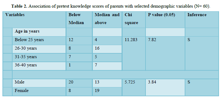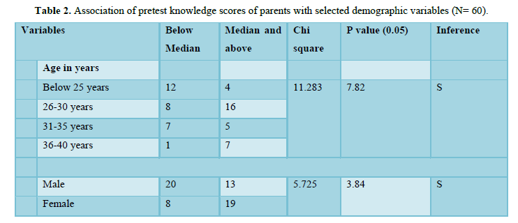 3. To associate the pre-test knowledge of parents on sibling rivalry and its management with their selected socio-demographic variables.