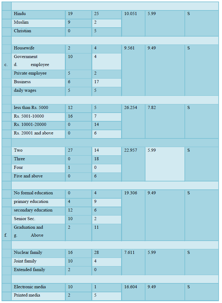 This consists of nine items related to socio-demographic variables (age, sex, religion, source of information, occupation, monthly income of family, education, number of children and types of family) of parents from selected community areas in Jaipur (Raj.).