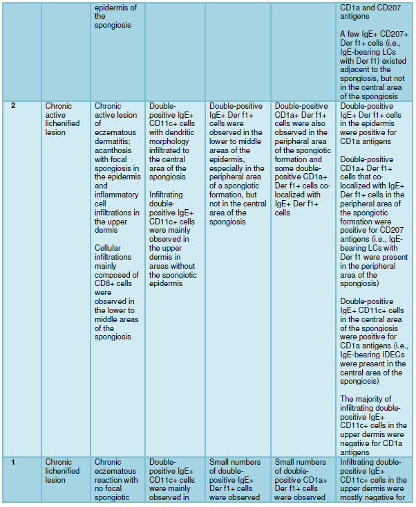 in the central area of the spongiosis. Additionally, IgE-bearing Langerhans