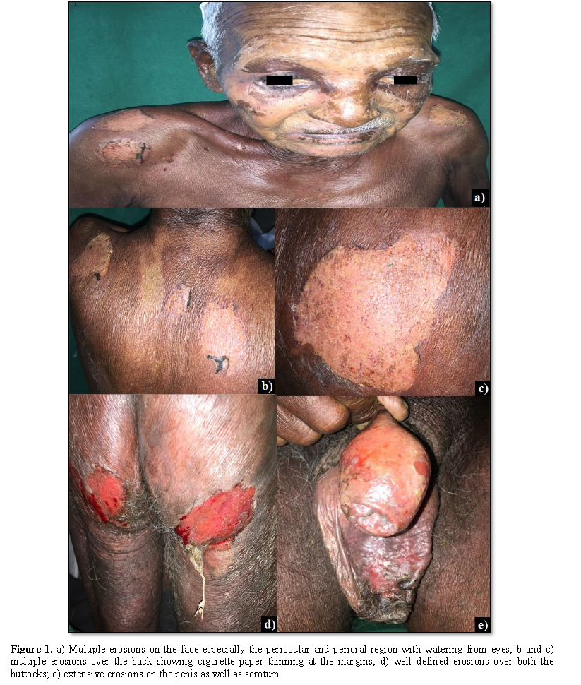 for 4 days, who subsequently developed fluid filled lesions and erosions,