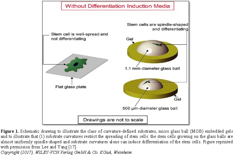 S.Y. has been granted a United States patent for the invention of the class of cell culture substrates reviewed in this paper. Title of Patent: “Micro and nano glass balls embedded in a gel presenting micrometer and nanometer scale curvature and stiffness patterns for use in cell and tissue culturing and a method for making same”, Patent No.: US 8,802,430, Date of Patent: Aug 12, 2014.