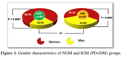 The gender characteristics of NGM and IGM (PD+DM) groups are presenting in Figure 1.