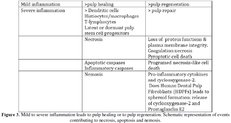 Two hundred billion cells are dying every day. They need to be renewed. Dying or dead cell are involved a series of apoptotic events or eventually displays necrosis. Four basic modes of cell death have been identified. Apoptosis purges no-longer useful cells via phagocytosis, eliminating old cells, and/or stimulate tissue regeneration. Apoptotic cells are reflecting a suicidal event, whereas necrosis is playing role as a homicide. Active programed processes are characterized as being an autonomous happening. The process concerns caspases, which are inhibitors of apoptosis. According to morphologic and biochemical criteria, caspases contribute to membrane blebbing, intra-cytoplasmic alterations and formation of cysteine-rich domains. They are implicated in the translocation of nuclear proteins, play role in the control of the calcium efflux, regulate membrane permeability, and inhibit the translocation of mitochondrial membranes associated to apoptosis. DNA damages, nuclear fragmentation leading to the formation of apoptotic bodies, autophagic cell death, necrosis and other forms of cellular death are instrumental in the reliability of apoptotic events leading to cells death. Apoptosis appears to be crucial in morphogenesis, and actually guide a series of measurable biochemical features involved in tissue renewal and regeneration.