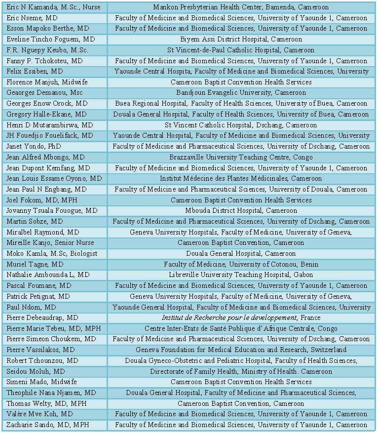 faculties of medicine of the Universities of Dschang, Geneva, Yaounde I and the