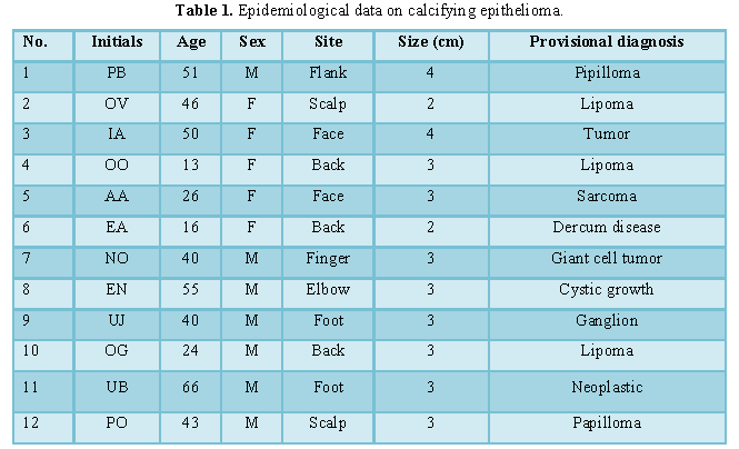 Pereira NA et al. (2012) Pilomatricoma: Calcifying epithelioma of Malherbe. Rev