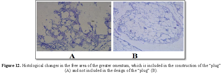 12B). Hematoxylin-eosin staining. Increase X100. Fragment of adipose tissue