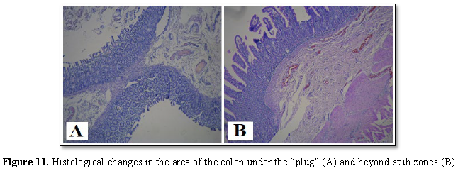 colon under the “plug” № 10146/50 from 10/13/2016 (Figure 11A). Coloring hematoxylin-eosin. Increase X100. Mucosa