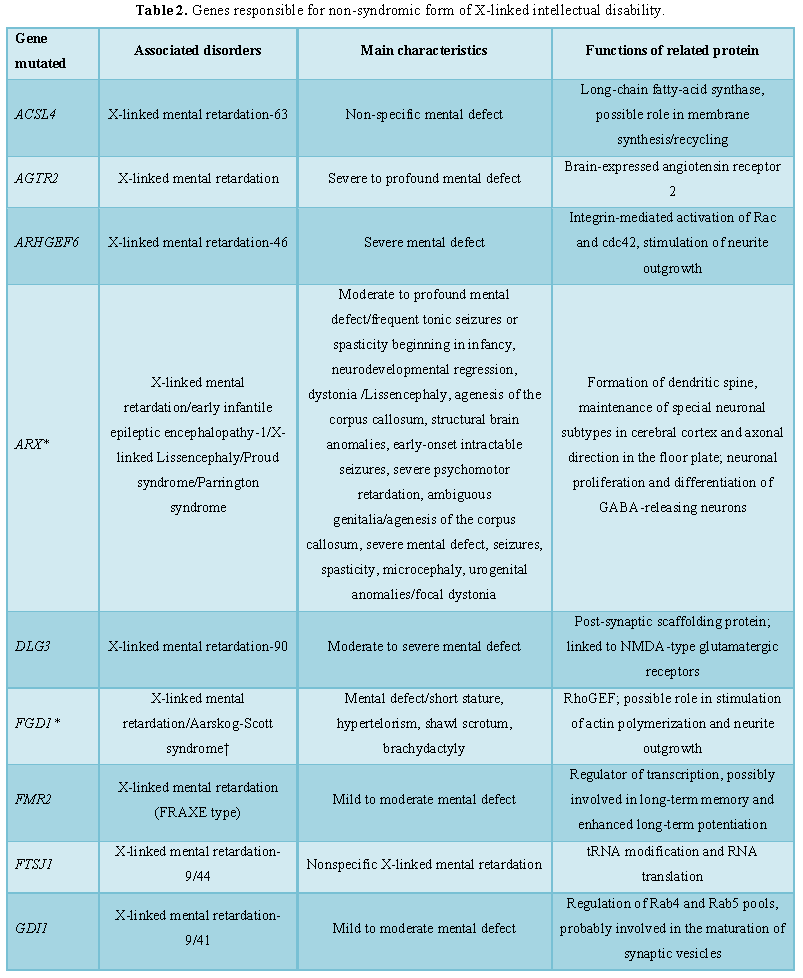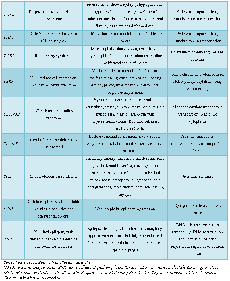 inherited disorders emerging as various degrees of intellectual disabilities.