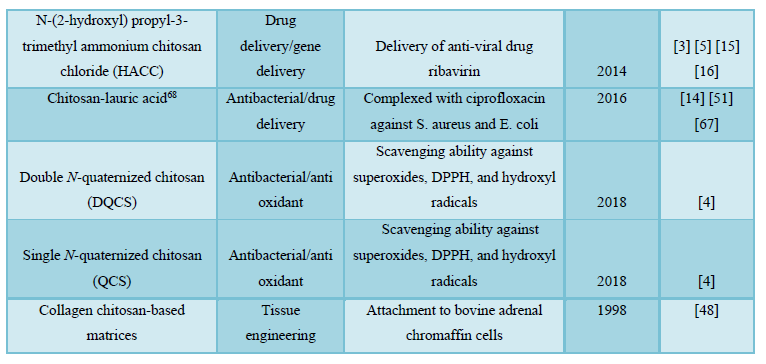 5. Wang W, Meng Q, Li Q, Liu, J, Zhou M, et al. (2020) Chitosan derivatives and their application in biomedicine. Int J Mol Sci 2020(2): 487.