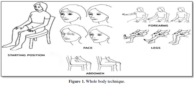 - Progressive Muscle Relaxation Technique: In this study progressive muscle relaxation technique is a type of therapy that focuses on tightening and relaxing specific muscle groups in sequence. It’s also known as Jacobson progressive relaxation technique. By concentrating on specific areas and tensing and then relaxing them, can become more aware of body and physical sensations. The technique involves tightening one muscle group while keeping the rest of the body relaxed, and then releasing the tension.