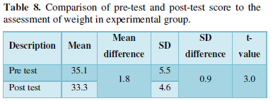4.Weight is measured by weight machine-WHO criteria for weight assessment (Table 4).