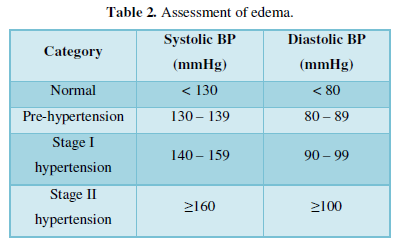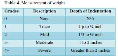 2. Edema is assessed by edema 4-point scale by finger and scale Source-National Health Mission (Table 2).