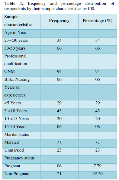 Table 1 show the findings of the present study showed that participants aged 30 years -50 years possess maximum number (66%) and 34% of them belong to the age group 23-