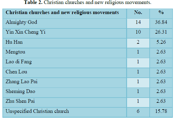 domestic churches (jiating jiaohui家庭教会) and new cults like the Almighty God church