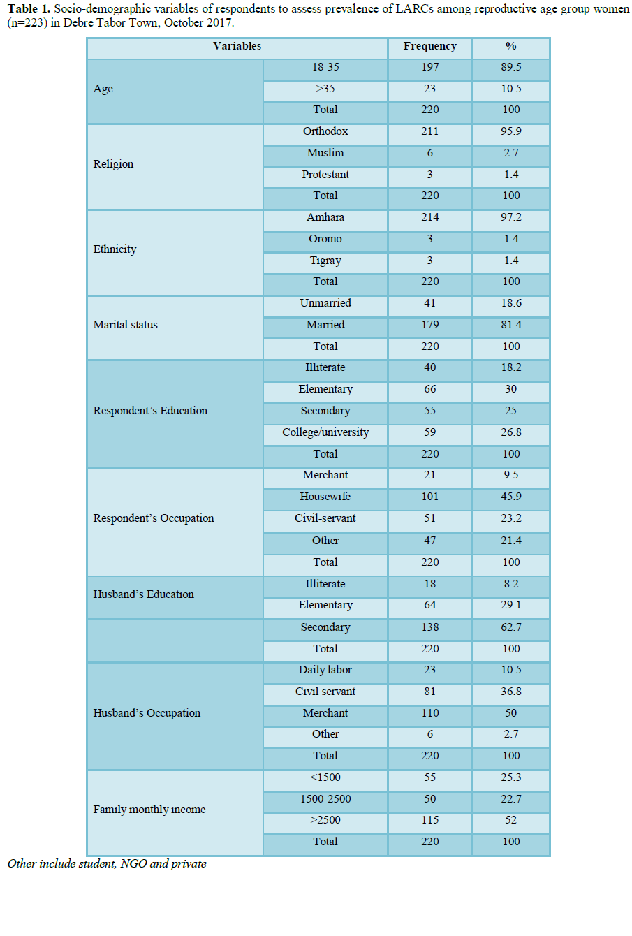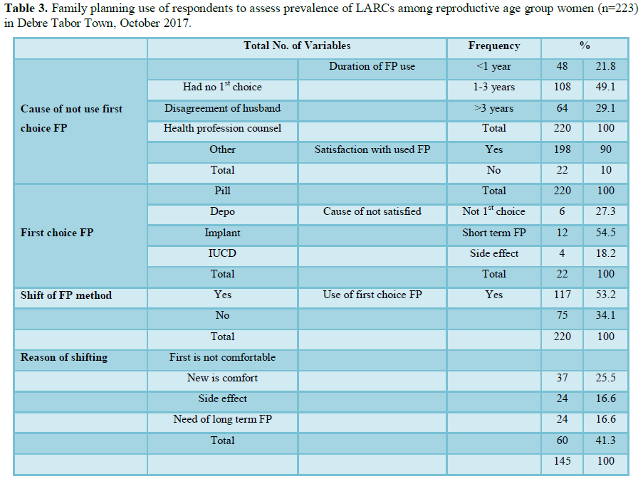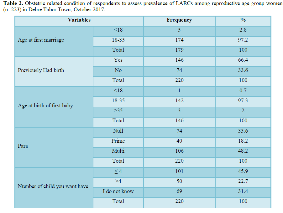 reproductive age group women in Debre Tabor Town was 60 (27.3%). Debre Tabor