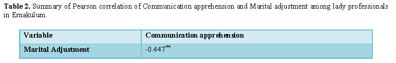 - There will be significant relationship between communication apprehension and marital adjustment among lady professionals in Ernakulum.