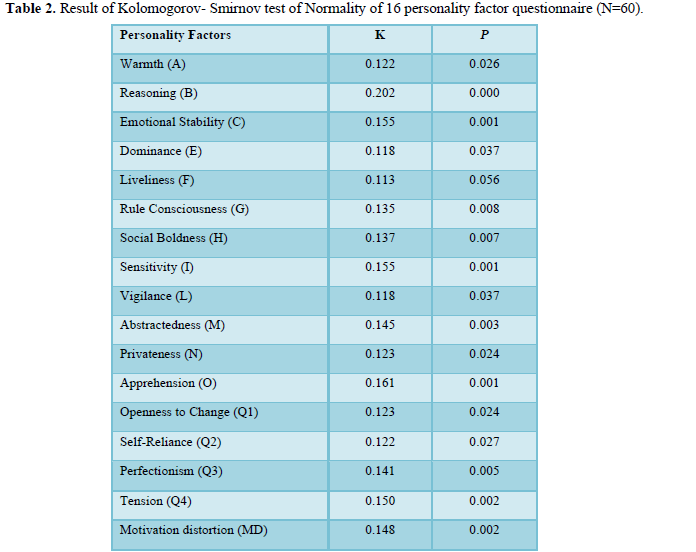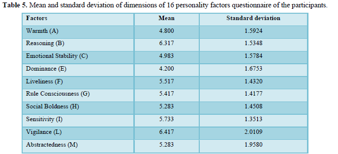 The Sixteen Personality Factor Questionnaire (16 PF) is a quantitative measure of normal range personality that has been shown to be useful in a various setting where a thorough assessment of the entire person is needed. The Sixteen Personality Factor Questionnaire is a self-report personality test that was developed by Cattell [16] over several decades of empirical research. The 16PF offers a measure of normal behavior and can also be used as a clinical resource by psychologists and other mental health professionals to aid in the diagnosis of psychiatric disorders as well as in the preparation of prognosis and therapies.