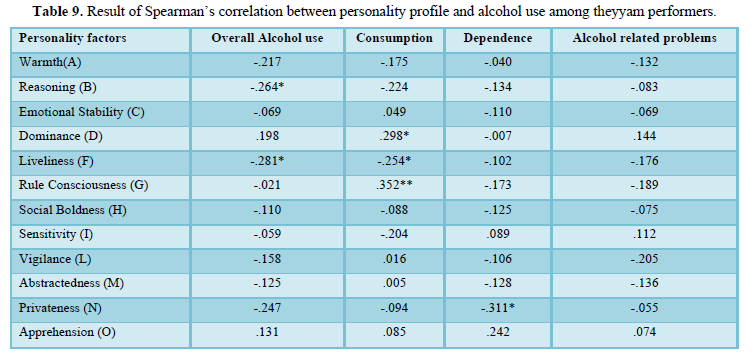 - To find out the relationship between personality profile and alcohol use in theyyam performers