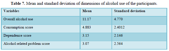 The Cronbach’s alpha for AUDIT screen tool when administered to the present sample was found to be 0.591.